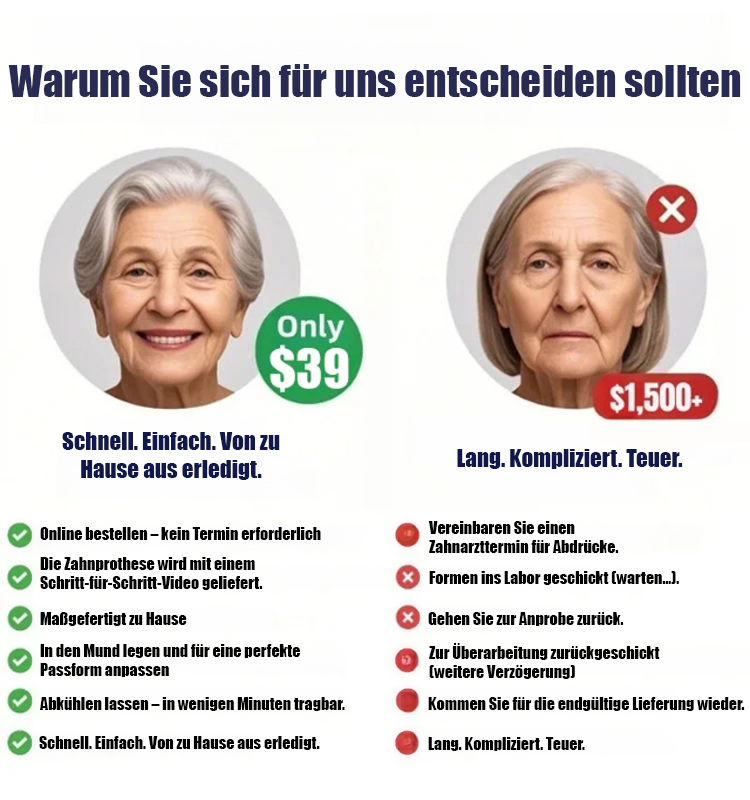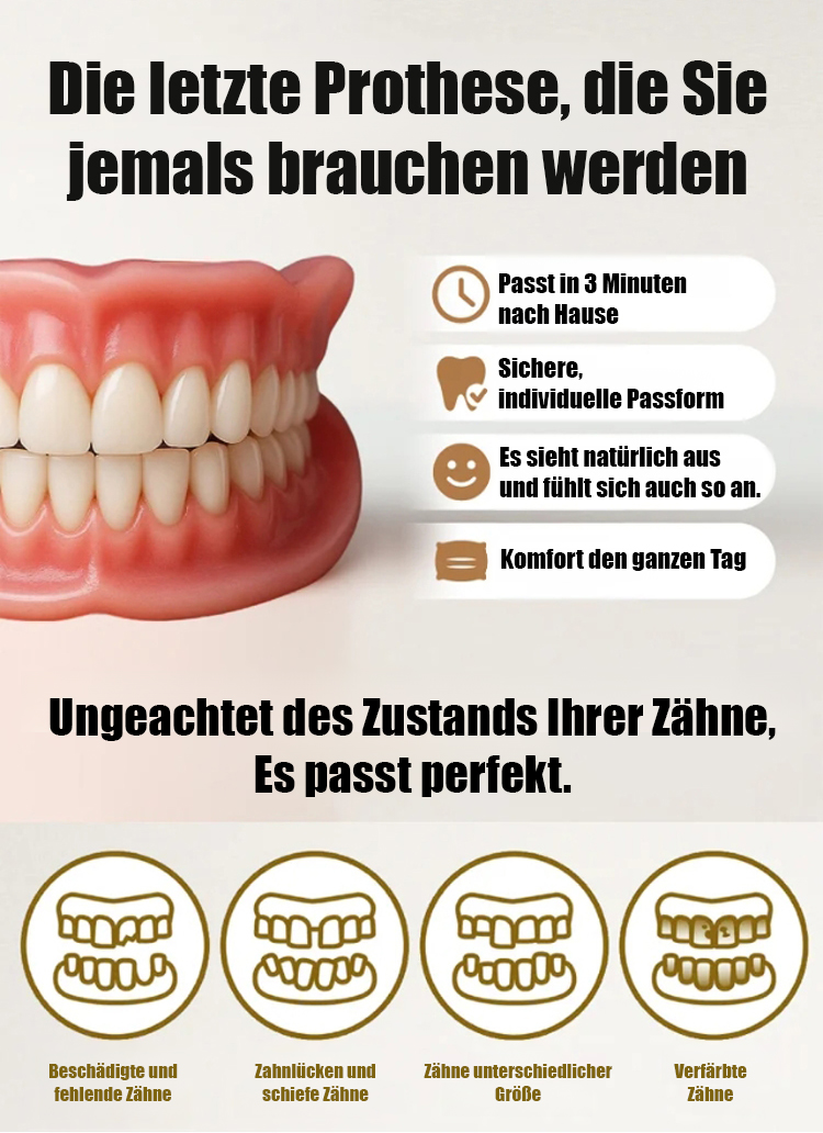 ✅Egal ob Sie alle Zähne haben, einige fehlen oder gar keine mehr vorhanden sind – wir lösen Ihr Problem in nur einer Sekunde! ✨ Testen Sie es 14 Tage lang risikofrei. Sollte es nicht funktionieren, erhalten Sie Ihr Geld zurück!