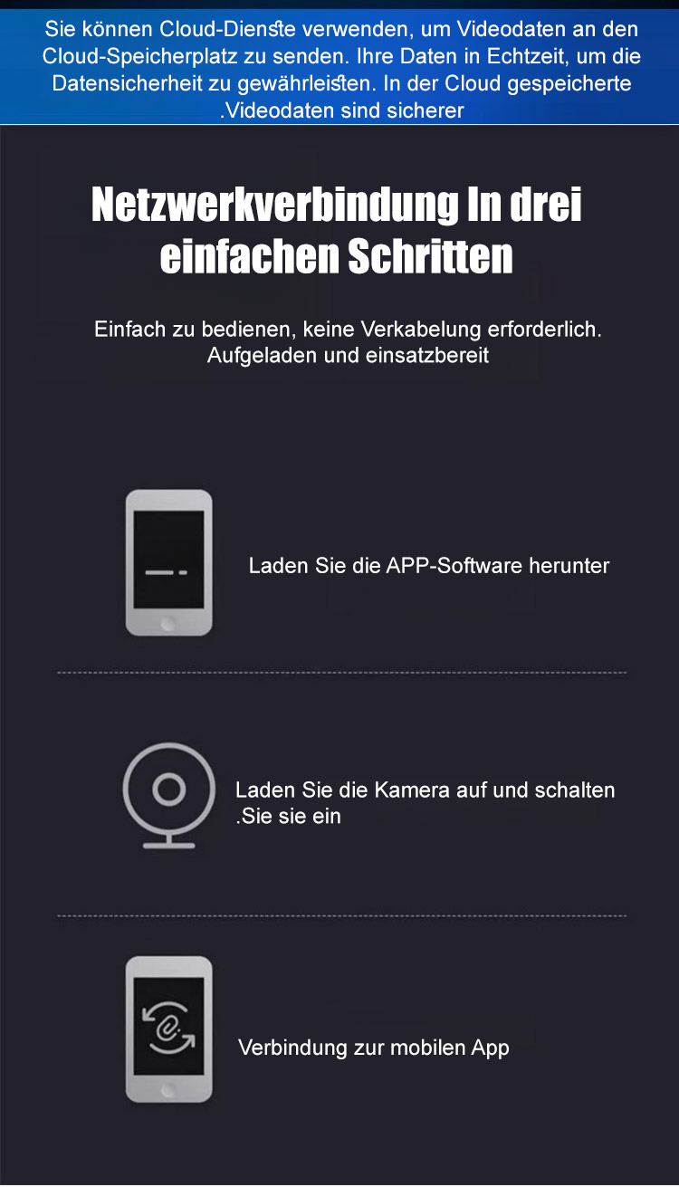 Es ist sofort einsatzbereit. Einfach aufladen, einschalten, die App herunterladen und verbinden. Die Netzwerkeinstellungen sind in drei Schritten erledigt. Die Bedienung ist kinderleicht.